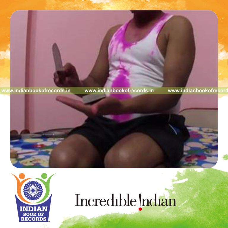 The Fastest Time To Cut a Deck of Playing Cards in Hand using a Knife clocked to 1.7 seconds. It was accomplished by Suresh Gaur at Gwalior, Madhya Pradesh, India on March 26, 2016.