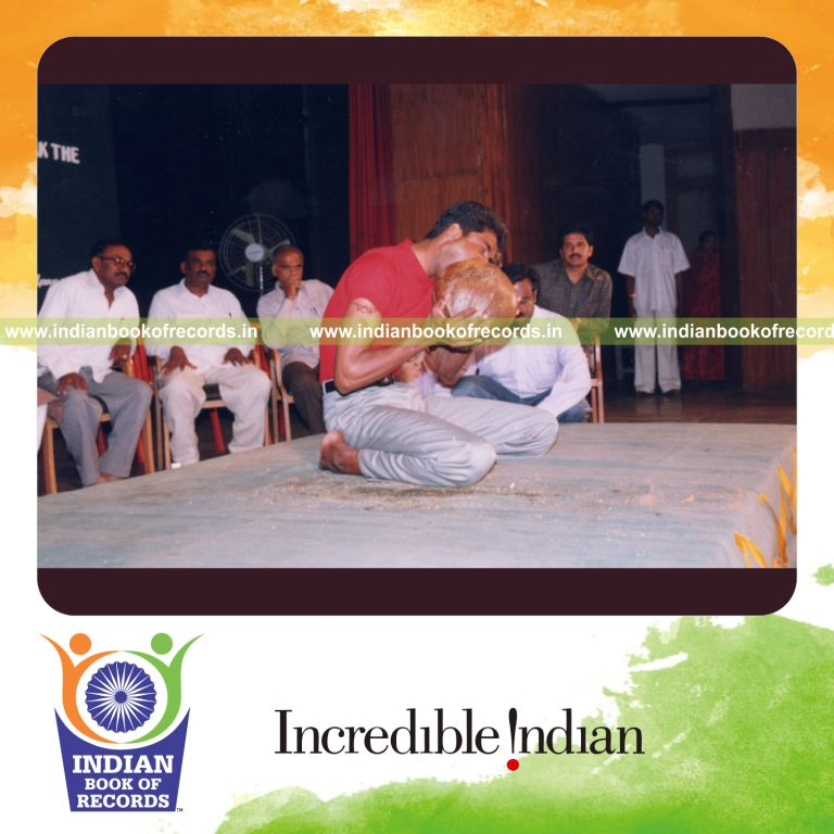 The Fastest Time to Husk a Coconut with Teeth clocked to 28.06 seconds. It was accomplished by Siddaraju Siddappa at Ravindra Kalashetra, Bangalore, India on March 30, 2003.