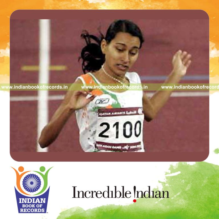 The Fastest Time to perform 800 metres Running Indoor (Female) clocked to 2 Minute 03.43 Seconds. It was accomplished by Sinimol Paulose at Doha, Qatar on February 14, 2008.
