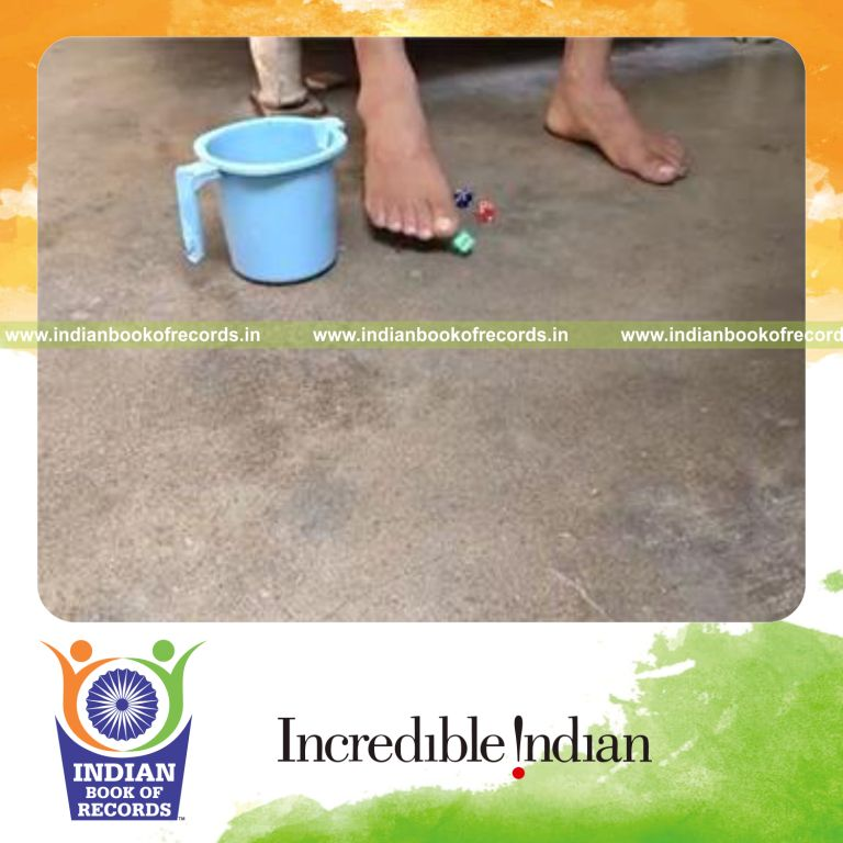The Fastest Time to Pick up Four Dice and Place Them in a Plastic Cup using Foot clocked to 2.5 seconds. It was accomplished by Suresh Gaur at Gwalior, Madhya Pradesh, India on May 08, 2017.