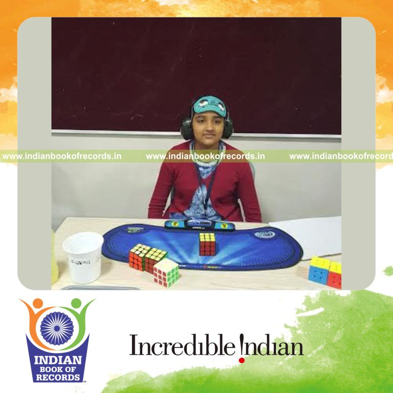 The Fastest Time to Solve Rubik's Cube while Blindfolded by an Individual (Female) clocked to 2 minutes and 56.43 seconds. It was accomplished by Soundhariya Hariharan at St. Xavier’s College, Mumbai, Maharashtra, India on February 6, 2016.