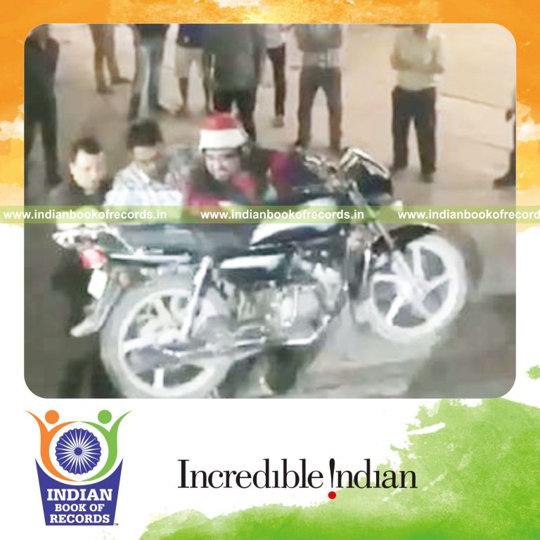 The Heaviest Motorcycle Carried up and Down a Staircase weighed 110 kilograms. It was accomplished by Montystar Agarawal at Gurgaon, Haryana, India on June 21, 2014.