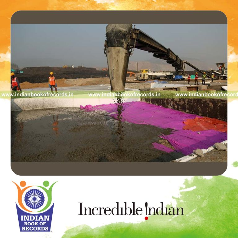 The Largest Continuous Concrete Pour measured 32315.5 Cubic meters (1141211.11 Cubic feet). It was accomplished by Navayuga Engineering Company Limited at Polavaram Dam Project, in Polavaram, Andhra Pradesh, India on January 7, 2019.
