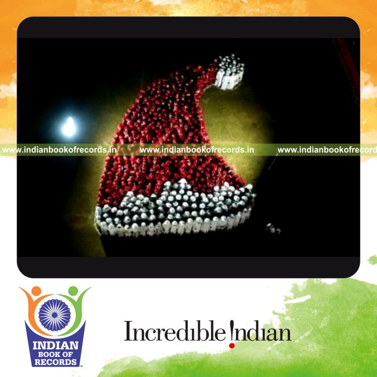 The Largest Human Image of a Santa Hat counted to 525 participants. It was accomplished by Dr. Francis Cleetus, National Charitable Trust, Father Roy Kannanchira and Special Olympics Bharat at LNCPE Stadium, Thiruvananthapuram, Kerala, India on January 11, 2018.