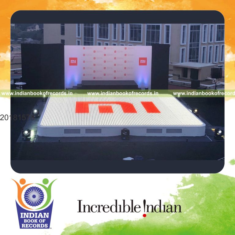 The Largest Light Mosaic (logo) measured 53.8 square meters (579.1 square feet) was accomplished by Xiaomi Technology India Private Limited at Xiaomi India Head Office, Bengaluru,India on September 11, 2018.