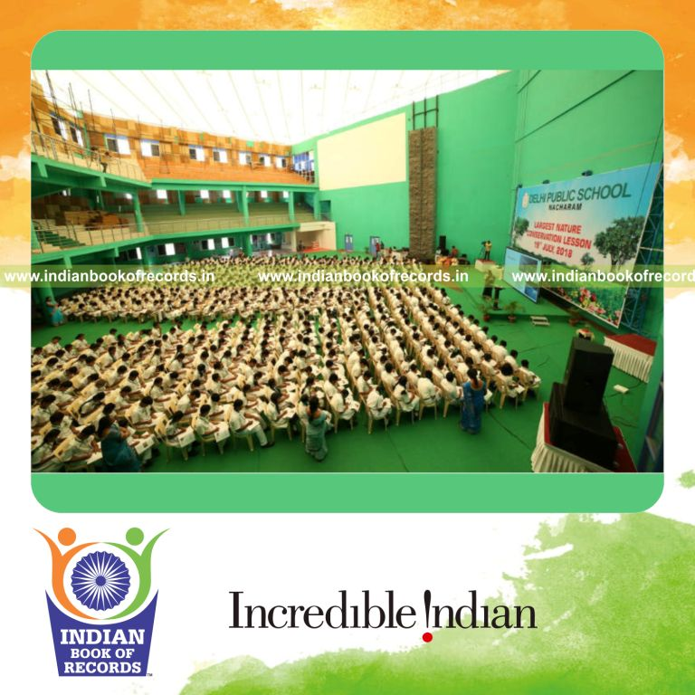 The Largest Nature Conservation Lesson counted to 798 participants. It was accomplished by Delhi Public School of Nacharam branch at Hyderabad, India on July 19, 2018.