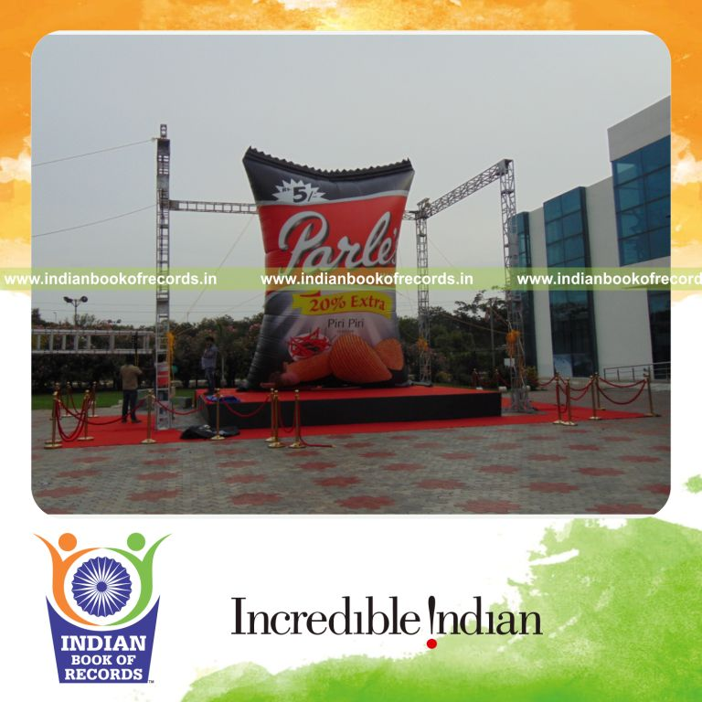 The Largest Snack Pack measured 7.65 meters in height. and 5.74 meters in width. It was accomplished by Parle Wafers and Elite Circle at Codissia Trade Fair Complex, Coimbatore District, Tamil Nadu, India on September 1, 2018.