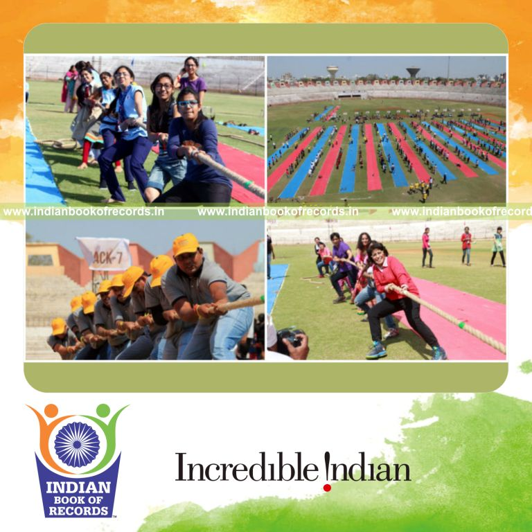 The Largest Tug of War Tournament counted to 6282. It was accomplished by Wajra O' Force Empowerment Foundation and Rasna & H.B. Kapadia New High School at Gujarat, India on March 13, 2016.