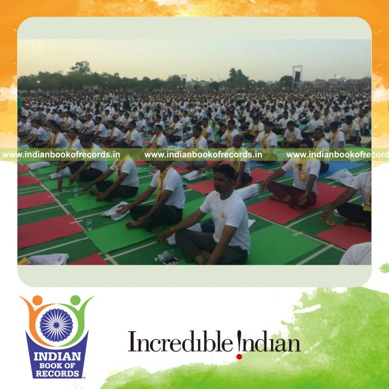 The Largest Yoga Lesson counted to 1,00,984 participants. It was accomplished by Government of Rajasthan, Patanjali Yogapeeth and District Administration of Kota at Kota, Rajasthan, India on June 21, 2018.