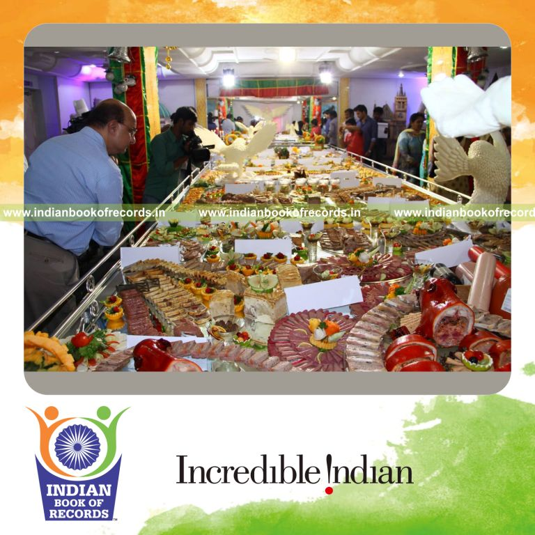 The Longest Cold Meat Platter made by a Team measured weighed 300 kilograms of meats in 800 man hours. It was accomplished by 100 chefs of Culinary Academy of India, Hyderabad, Telangana, India on December 23, 2015.