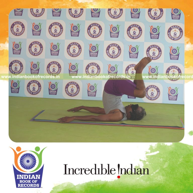 The Longest Duration Holding Baddha Salamba Sarvangasana Yoga Pose Blindfolded by an Individual (Male) lasted for 3 Minutes and 5 Seconds. It was accomplished by Dr.V.Gunasekaran, Founder-Maragatham Yogalayam at Udumalpet, Tirupur District, Tamil Nadu, India on September 22, 2019.