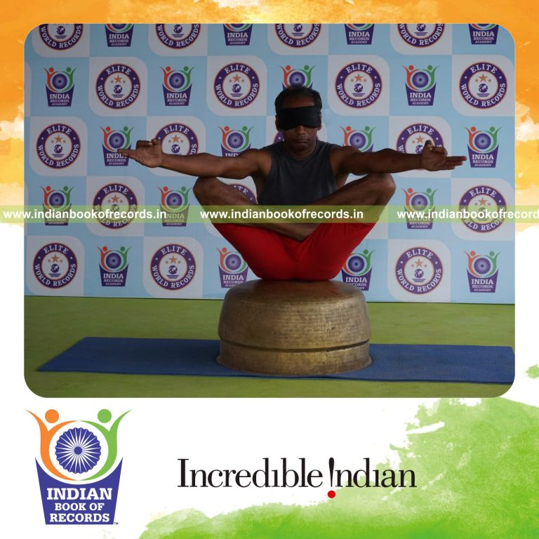The Longest Duration Holding Chinmudra Thulangasana Yoga Pose Blindfolded on a Vessel by an Individual (Male) lasted for 2 Minutes and 3 Seconds. It was accomplished by Dr.V.Gunasekaran, Founder-Maragatham Yogalayam at Udumalpet, Tirupur District, Tamil Nadu, India on September 25, 2019.
