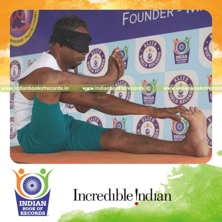 The Longest Duration Holding Daksina Akarna Dhanurasana Yoga Pose Blindfolded on a Table by an Individual (Male) lasted for 3 Minutes and 4 Seconds. It was accomplished by Dr.V.Gunasekaran, Founder-Maragatham Yogalayam at Udumalpet, Tirupur District, Tamil Nadu, India on September 24, 2019.