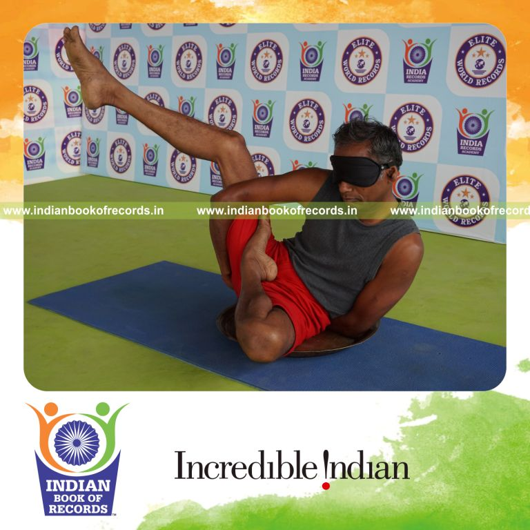 Longest Duration Holding Daksina Ardha Baddha Parsva Krounchasana Yoga Pose Blindfolded on a Brass Plate by an Individual (Male)