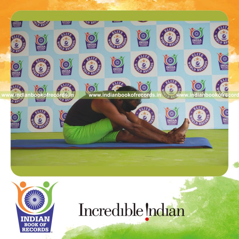 The Longest Duration Holding Daksina Ardha Janu Sirsasana Yoga Pose Blindfolded by an Individual (Male) lasted for 7 Minutes. It was accomplished by Dr.V.Gunasekaran, Founder-Maragatham Yogalayam at Udumalpet, Tirupur District, Tamil Nadu, India on September 15, 2019.