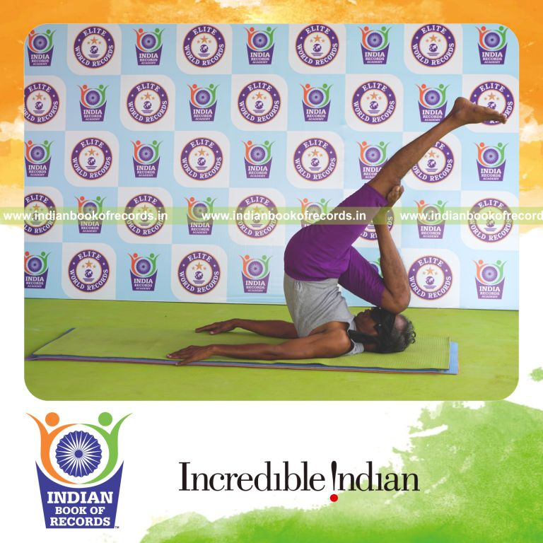 The Longest Duration Holding Daksina Ardha Salamba Sarvangasana Yoga Pose Blindfolded by an Individual (Male) lasted for 3 Minutes and 5 Seconds. It was accomplished by Dr.V.Gunasekaran, Founder-Maragatham Yogalayam at Udumalpet, Tirupur District, Tamil Nadu, India on September 22, 2019.