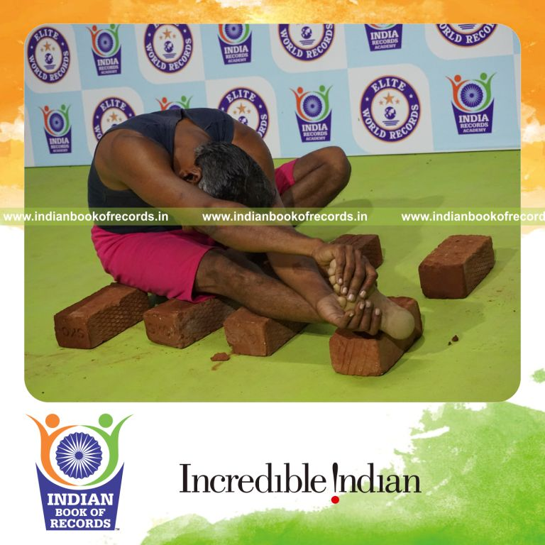 The Longest Duration Holding Daksina Parivrtana Janu Sirsasana Yoga Pose on Bricks by an Individual (Male) lasted for 2 Minutes and 2 Seconds. It was accomplished by Dr.V.Gunasekaran, Founder-Maragatham Yogalayam at Udumalpet, Tirupur District, Tamil Nadu, India on September 27, 2019.