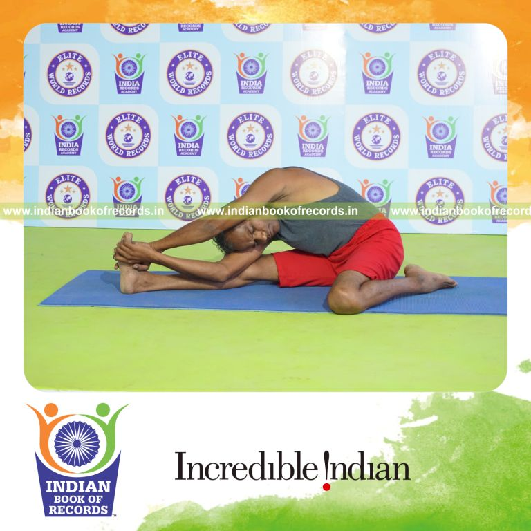 The Longest Duration Holding Daksina Parivrtta Gomukha Janu Sirsasana Yoga Pose by an Individual (Male) lasted for 3 Minutes and 4 Seconds. It was accomplished by Dr.V.Gunasekaran, Founder-Maragatham Yogalayam at Udumalpet, Tirupur District, Tamil Nadu, India on September 25, 2019.