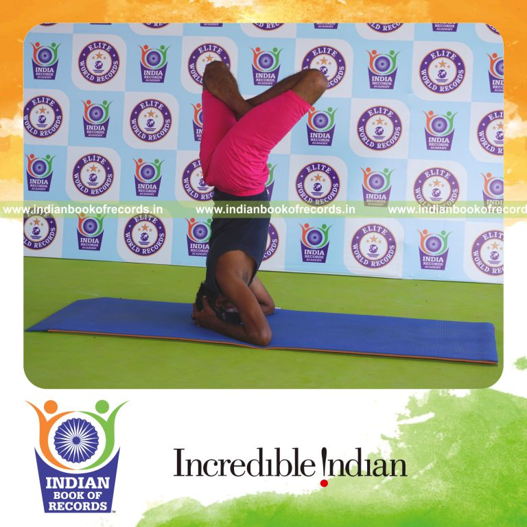 The Longest Duration Holding Daksina Parsva Padma Sirsasana Yoga Pose Blindfolded by an Individual (Male) lasted for 3 Minutes and 5 Seconds. It was accomplished by Dr.V.Gunasekaran, Founder-Maragatham Yogalayam at Udumalpet, Tirupur District, Tamil Nadu, India on September 21, 2019.
