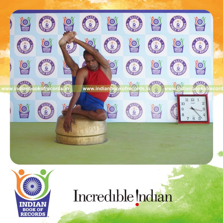 The Longest Duration Holding Daksina Purna Krounchasana Yoga Pose on a Vessel by an Individual (Male) lasted for 3 Minutes and 5 Seconds. It was accomplished by Dr.V.Gunasekaran, Founder-Maragatham Yogalayam at Udumalpet, Tirupur District, Tamil Nadu, India on September 23, 2019.