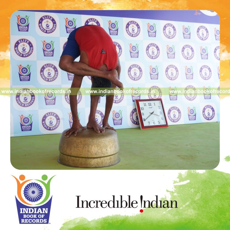 The Longest Duration Holding Daksina Ruchikasana Yoga Pose on a Vessel by an Individual (Male) lasted for 3 Minutes and 5 Seconds. It was accomplished by Dr.V.Gunasekaran, Founder-Maragatham Yogalayam at Udumalpet, Tirupur District, Tamil Nadu, India on September 23, 2019.