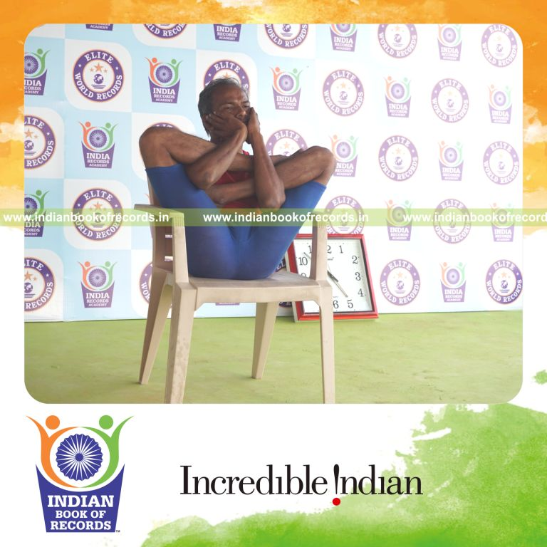 The Longest Duration Holding Purna Garbha Pindasana Yoga Pose on a Chair by an Individual (Male) lasted for 3 Minutes and 5 Seconds. It was accomplished by Dr.V.Gunasekaran, Founder-Maragatham Yogalayam at Udumalpet, Tirupur District, Tamil Nadu, India on September 23, 2019.