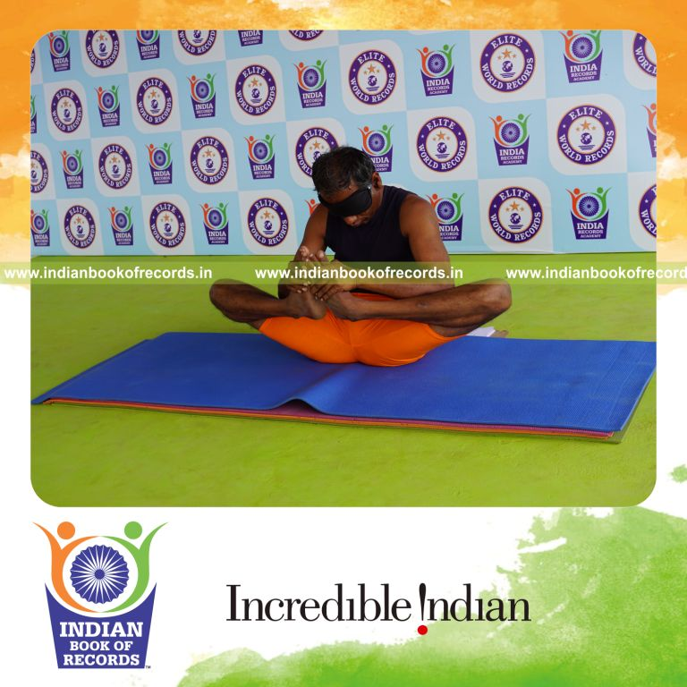 The Longest Duration Holding Skandasana Yoga Pose Blindfolded by an Individual (Male) lasted for 3 Minutes and 2 Seconds. It was accomplished by Dr.V.Gunasekaran, Founder-Maragatham Yogalayam at Udumalpet, Tirupur District, Tamil Nadu, India on September 26, 2019.