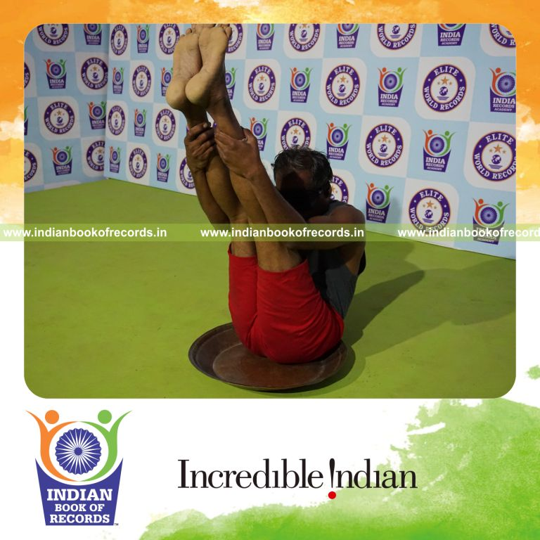 Longest Duration Holding Urdhva Mukha Paschimottanasana Yoga Pose Blindfolded on a Brass Plate by an Individual (Male)
