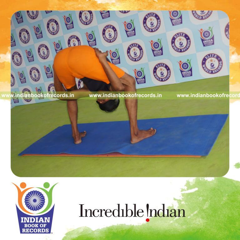 The Longest Duration Holding Uthitha Titibasana Yoga Pose Blindfolded by an Individual (Male) lasted for 3 Minutes and 1 Second. It was accomplished by Dr.V.Gunasekaran, Founder-Maragatham Yogalayam at Udumalpet, Tirupur District, Tamil Nadu, India on September 26, 2019.