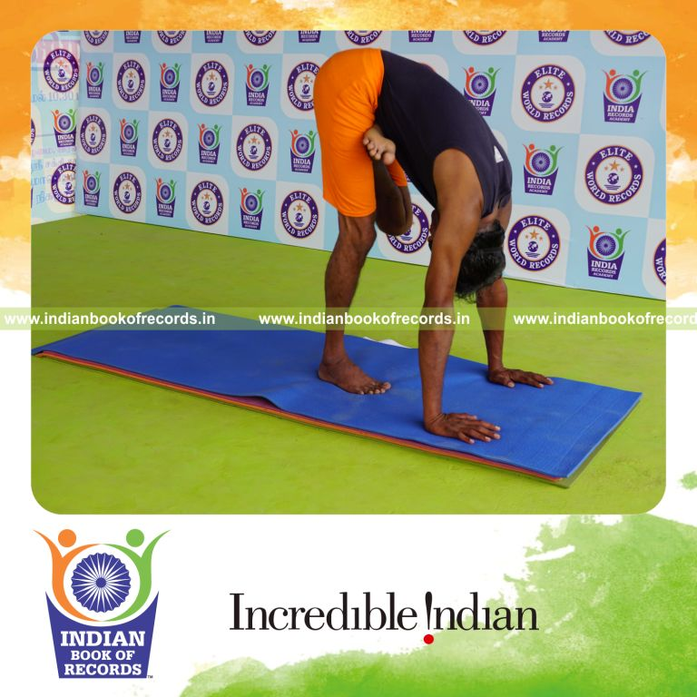 The Longest Duration Holding Vama Ardha Baddha Padmottasana Yoga Pose Blindfolded by an Individual (Male) lasted for 3 Minutes and 2 Seconds. It was accomplished by Dr.V.Gunasekaran, Founder-Maragatham Yogalayam at Udumalpet, Tirupur District, Tamil Nadu, India on September 26, 2019.