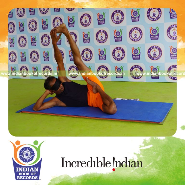 The Longest Duration Holding Vama Ardha Padma Anantasana Yoga Pose Blindfolded by an Individual (Male) lasted for 3 Minutes and 2 Seconds. It was accomplished by Dr.V.Gunasekaran, Founder-Maragatham Yogalayam at Udumalpet, Tirupur District, Tamil Nadu, India on September 26, 2019.