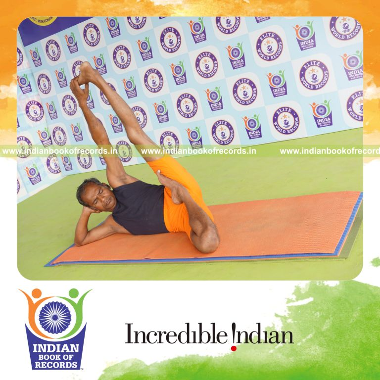 The Longest Duration Holding Vama Ardha Padma Anantasana Yoga Pose by an Individual (Male) lasted for 3 Minutes and 3 Seconds. It was accomplished by Dr.V.Gunasekaran, Founder-Maragatham Yogalayam at Udumalpet, Tirupur District, Tamil Nadu, India on September 26, 2019.