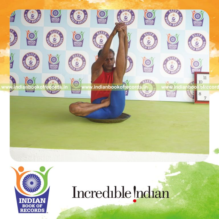 Longest Duration Holding Vama Ardha Padma Krounchasana Yoga Pose on a Brass Plate by an Individual (Male)