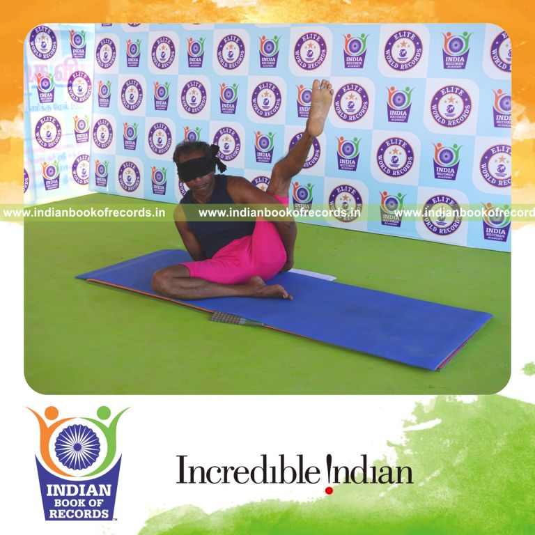 The Longest Duration Holding Vama Ardha Parsva Krounchasana Yoga Pose Blindfolded by an Individual (Male) lasted for 3 Minutes and 5 Seconds. It was accomplished by Dr.V.Gunasekaran, Founder-Maragatham Yogalayam at Udumalpet, Tirupur District, Tamil Nadu, India on September 21, 2019.