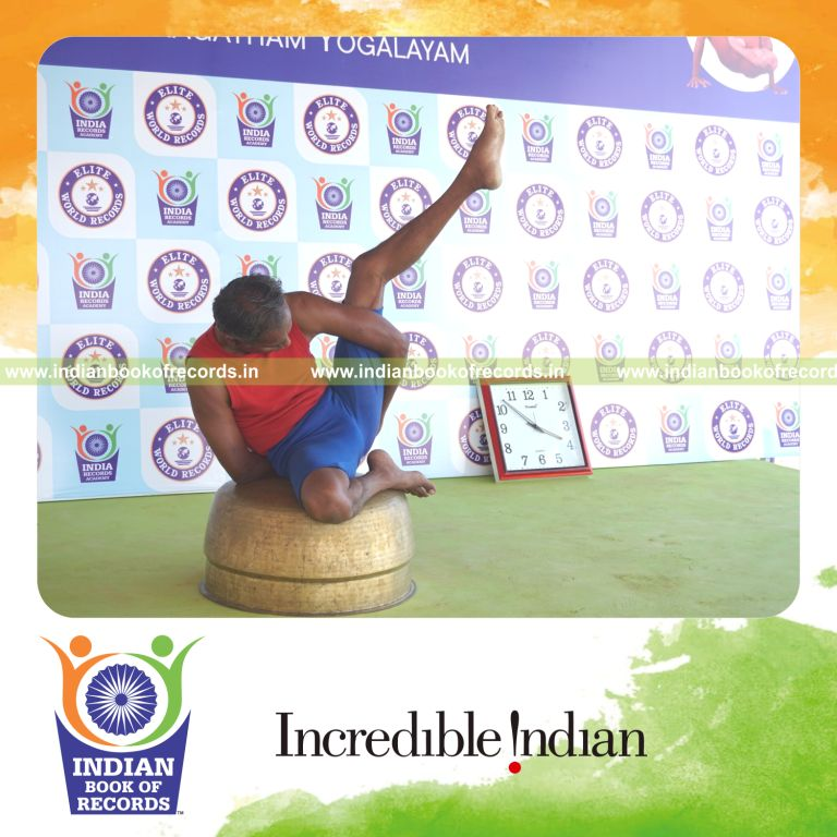 The Longest Duration Holding Vama Ardha Parsva Krounchasana Yoga Pose on a Vessel by an Individual (Male) lasted for 3 Minutes and 5 Seconds. It was accomplished by Dr.V.Gunasekaran, Founder-Maragatham Yogalayam at Udumalpet, Tirupur District, Tamil Nadu, India on September 23, 2019.