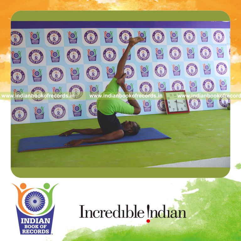 The Longest Duration Holding Vama Ardha Salamba Sarvangasana Yoga Pose by an Individual (Male) lasted for 3 Minutes. It was accomplished by Dr.V.Gunasekaran, Founder-Maragatham Yogalayam at Udumalpet, Tirupur District, Tamil Nadu, India on September 15, 2019.