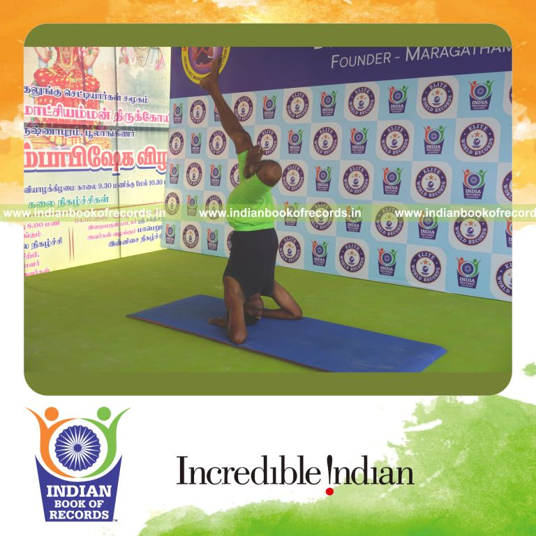 The Longest Duration Holding Vama Ardha Salamba Sirsasana Yoga Pose Blindfolded by an Individual (Male) lasted for 2 Minutes. It was accomplished by Dr.V.Gunasekaran, Founder-Maragatham Yogalayam at Udumalpet, Tirupur District, Tamil Nadu, India on September 15, 2019.