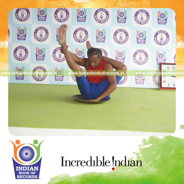 Longest Duration Holding Vama Ekapada Sirasa Krounchasana Yoga Pose on a Brass Plate by an Individual (Male)