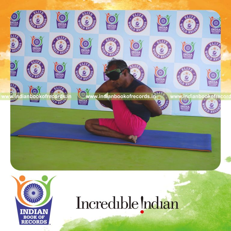 The Longest Duration Holding Vama Janu Parivrtta Ardha Matsyendrasana Yoga Pose Blindfolded by an Individual (Male) lasted for 3 Minutes and 5 Seconds. It was accomplished by Dr.V.Gunasekaran, Founder-Maragatham Yogalayam at Udumalpet, Tirupur District, Tamil Nadu, India on September 21, 2019.