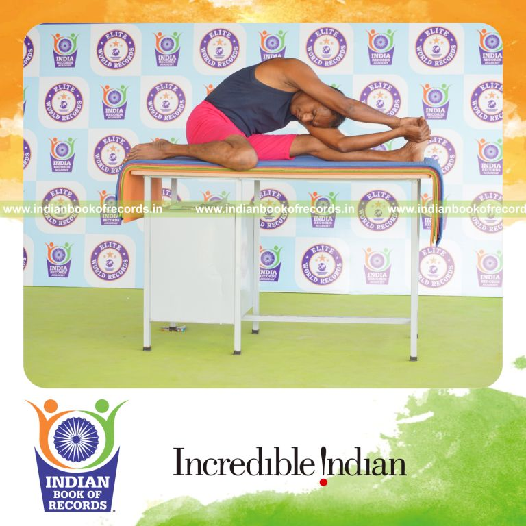 The Longest Duration Holding Vama Parivrtta Gomukha Janu Sirsasana Yoga Pose on a Table by an Individual (Male) lasted for 3 Minutes and 3 Seconds. It was accomplished by Dr.V.Gunasekaran, Founder-Maragatham Yogalayam at Udumalpet, Tirupur District, Tamil Nadu, India on September 27, 2019.
