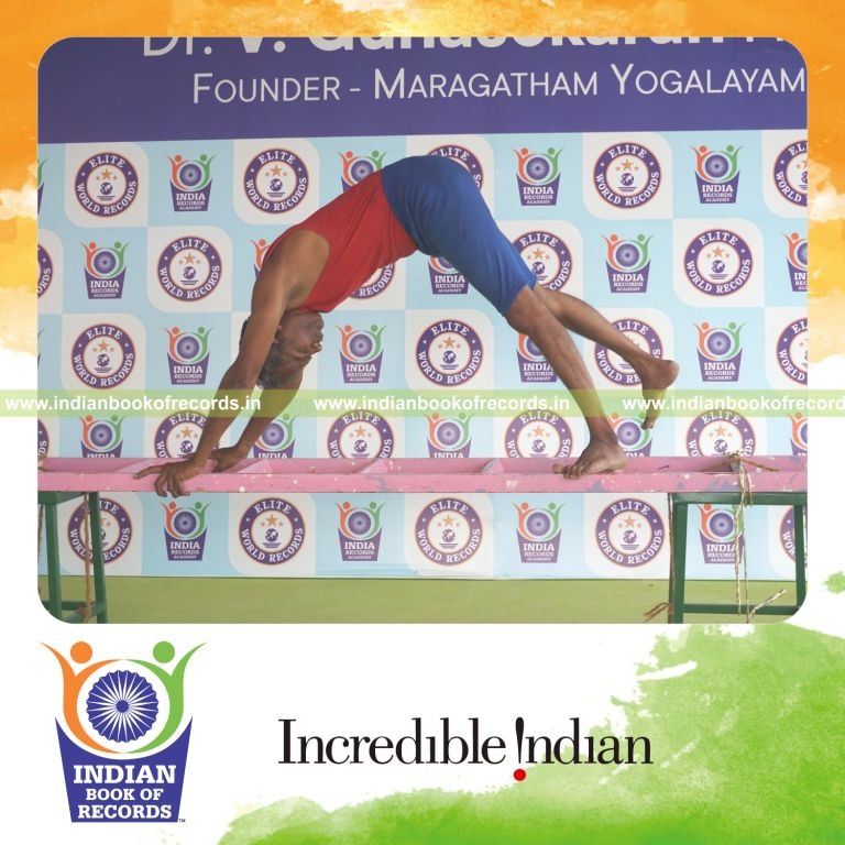 The Longest Duration Holding Vama Parsva Ekapada Adho Mukha Svanasana Yoga Pose on a Ladder by an Individual (Male) lasted for 2 Minutes and 3 Seconds. It was accomplished by Dr.V.Gunasekaran, Founder-Maragatham Yogalayam at Udumalpet, Tirupur District, Tamil Nadu, India on September 23, 2019.