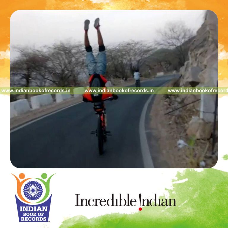 The Longest Headstand while Riding a Bicycle by an Individual (Male) covered 1.05 kilometers in 3 minutes and 2.22 seconds. It was accomplished by Lakshay Jangid at Jaighar Fort, Jaipur, India on May 5, 2016.