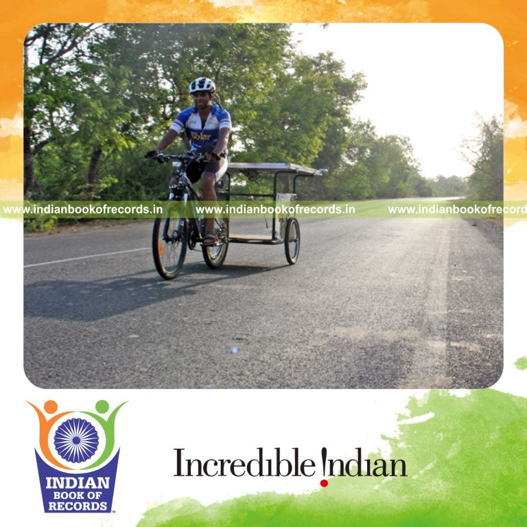 The Longest Journey on a Solar Powered Bicycle by an Individual (Male) covered 7,423.88 kilometers. It was accomplished by Sushil Reddy starts and ends with Mumbai, Maharashtra, India from May 8, 2016 to July 25, 2016.