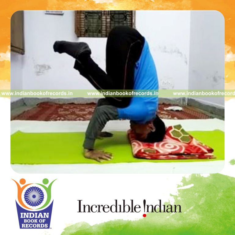 The Longest Leaning Crow Pose Held While Touching Head on the Ground lasted for 23 minutes and 40 seconds. It was accomplished by Krishan Kumar at New Delhi, India on November 13, 2016.