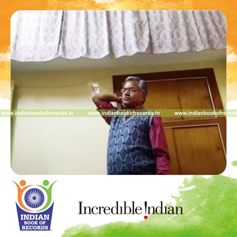 The Longest Time Balancing A Glass of Water on Elbow lasted for 12 minutes and 6.15 seconds. It was accomplished by Suresh Gaur at Gwalior, Madhya Pradesh, India on December 13, 2017.