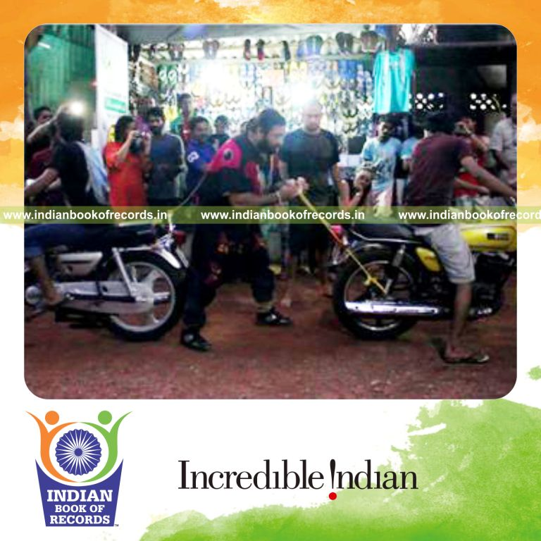 The Longest Time to Keep Two Running Motorcycles Stopped using one's Hair and Teeth lasted for 6.47 seconds. It was accomplished by Montystar Agarawal at Goa Anjuna Beach, India on November 29, 2012.