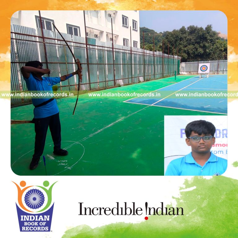 The Maximum Arrows Shot at a 20-Meter Archery Target in 2 Hours by an Individual (Minor – Male) counted to 237. It was accomplished by Ajay Aadhavan E, Grade-VII, FIITJEE Global School in Vellore District, Tamil Nadu, India on November 15, 2025.