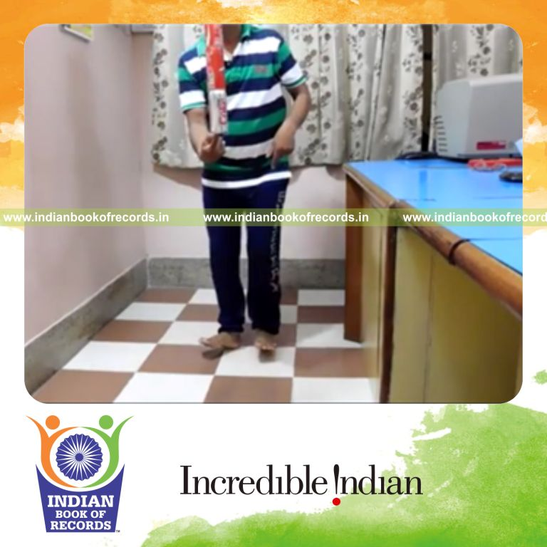The Maximum Number of 360 Degree Rotations on Heels while Balancing Five Cans on Right Index Finger counted to 25. It was accomplished by Suresh Gaur at Gwalior, Madhya Pradesh, India on July 07, 2015.