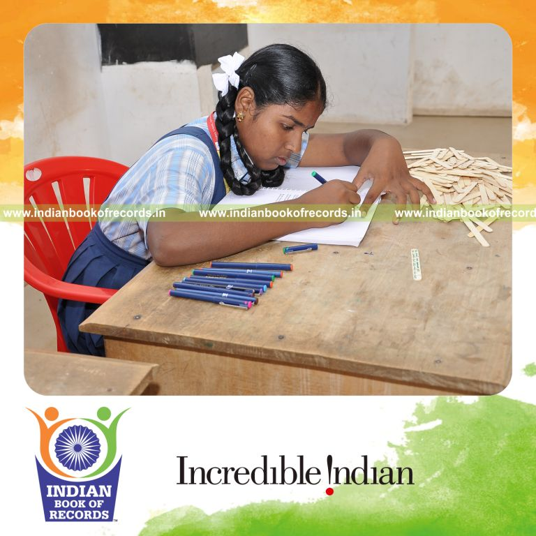 The Maximum Number of Captions Written on Ice Sticks by a Minor (Female) in 12 Hours counted to 1461 ice sticks. It was accomplished by S.Savithri @ Vandhana, Studying in Class VII of Achariya Bala Siksha Mandir, Pondicherry, India on April 16, 2013.