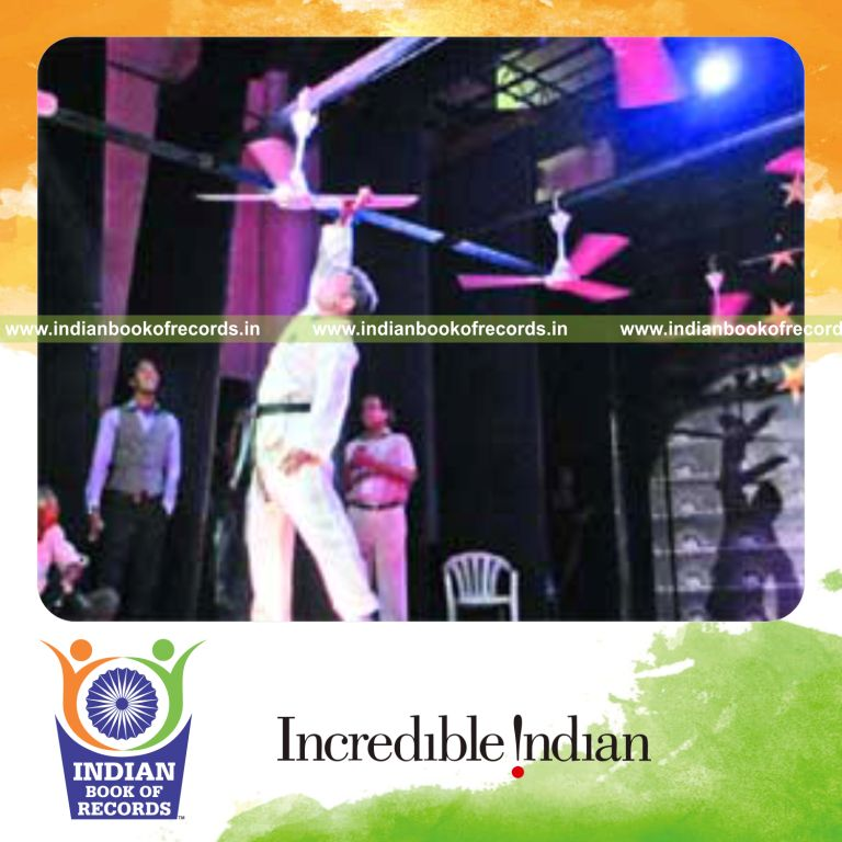The Maximum Number of Circumvolving Fans Stopped with Bare Hands by an Individual (Male) in 1 Minute counted to 26 fans. It was accomplished by Mayur Jitsingh Kagade at Nehru Memorial Hall, Pune, Maharashtra, India on July 20, 2012.